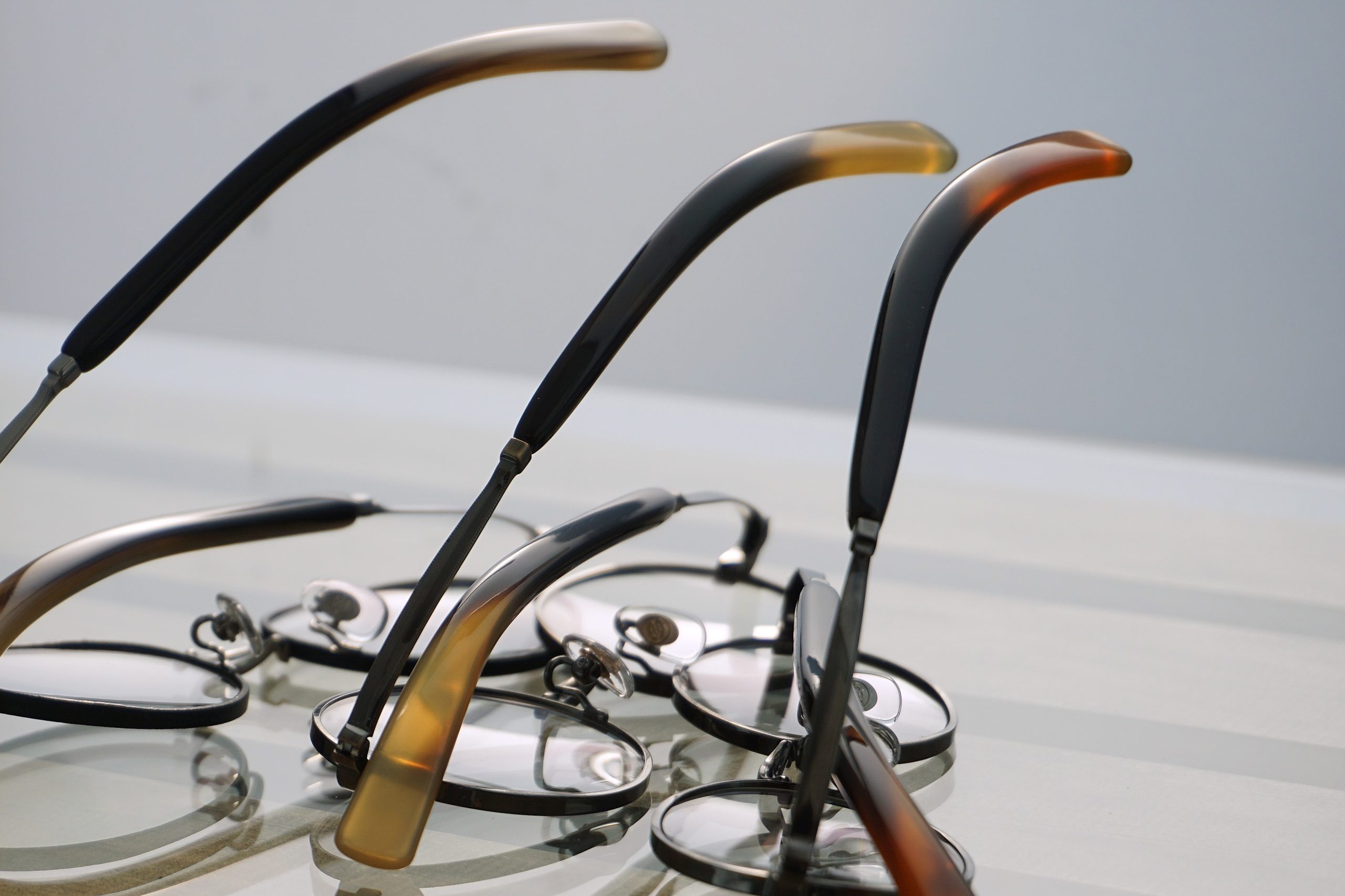 テンプル製作を担うのは、二代続く鼈甲職人中村甲芸 <中村秀樹>。素材選びから仕上げまで全工程を一貫して手作業で行うことを信条とし、素材本来の美しさを極限まで引き出すその技術は芸術とまで称される。